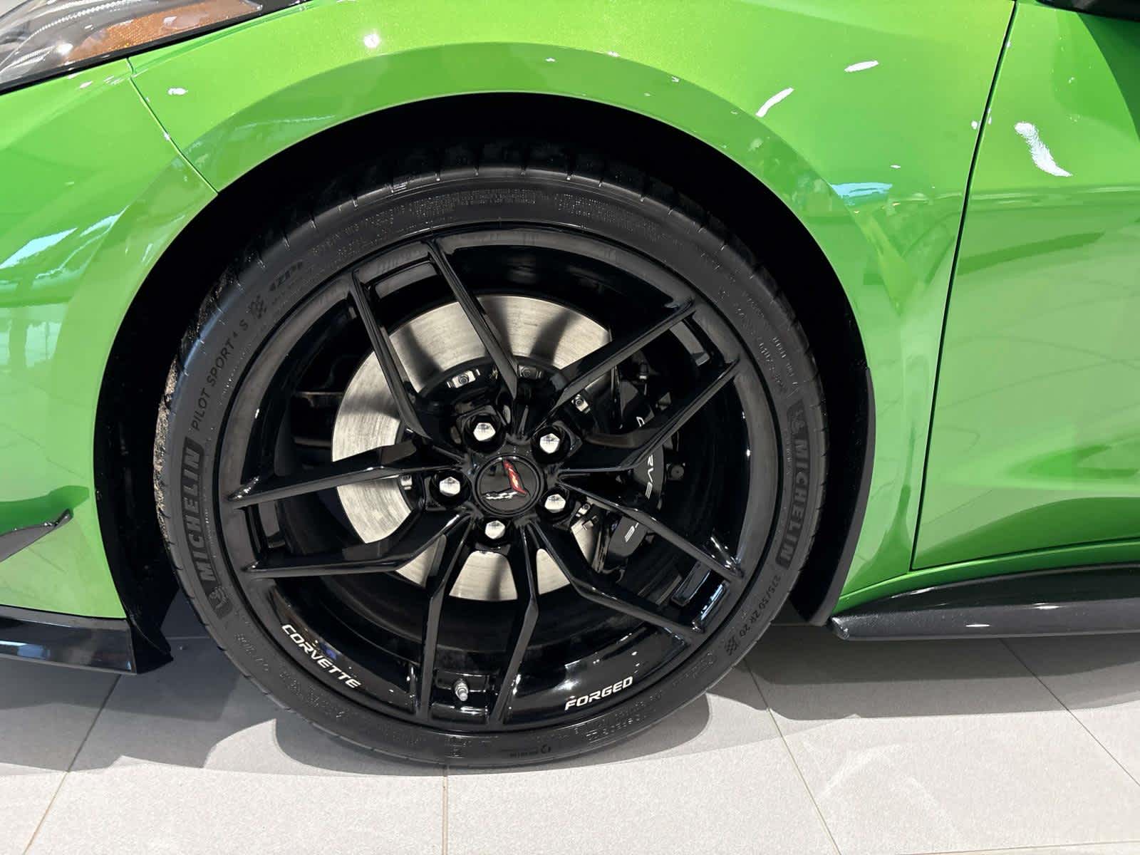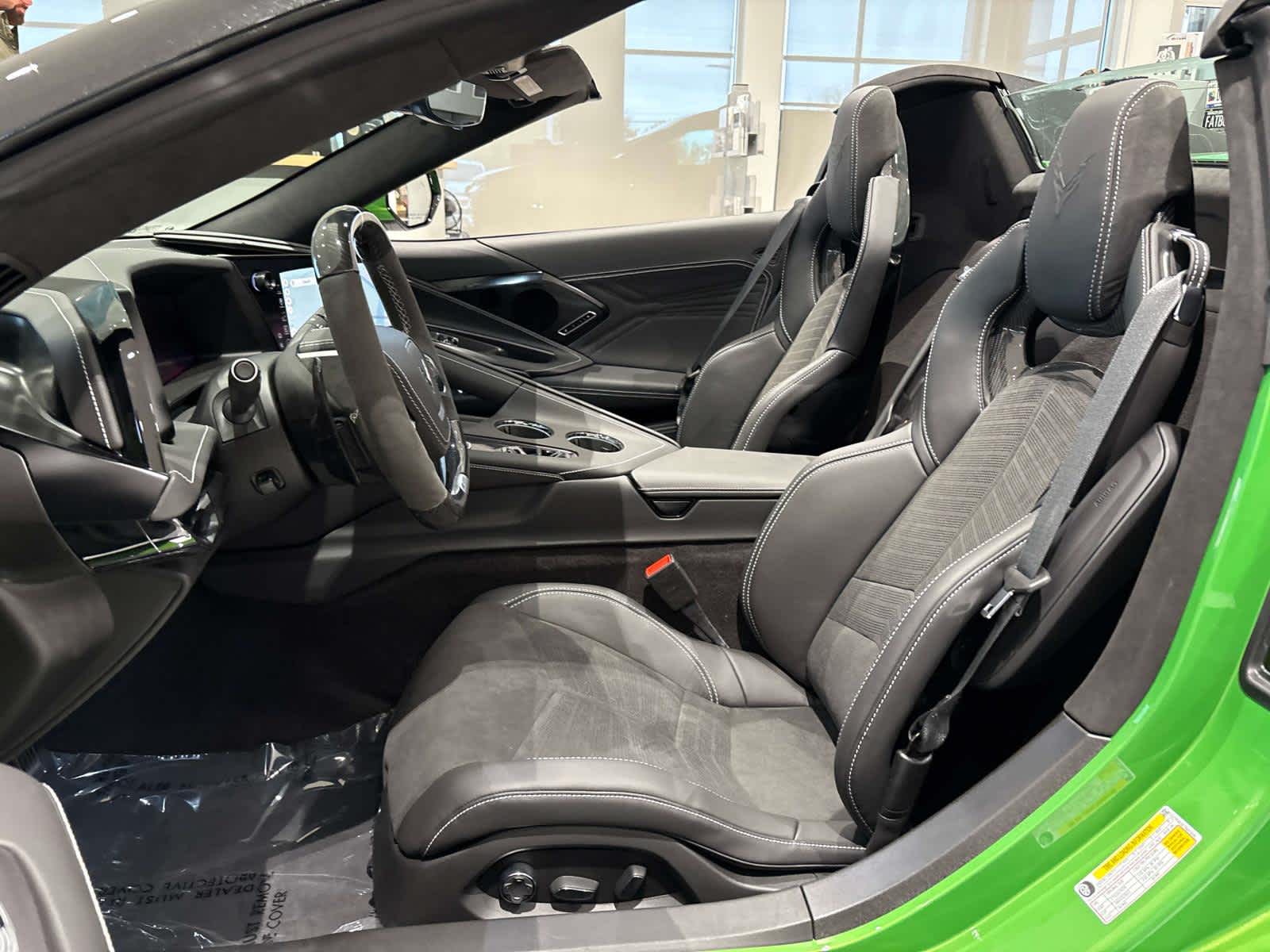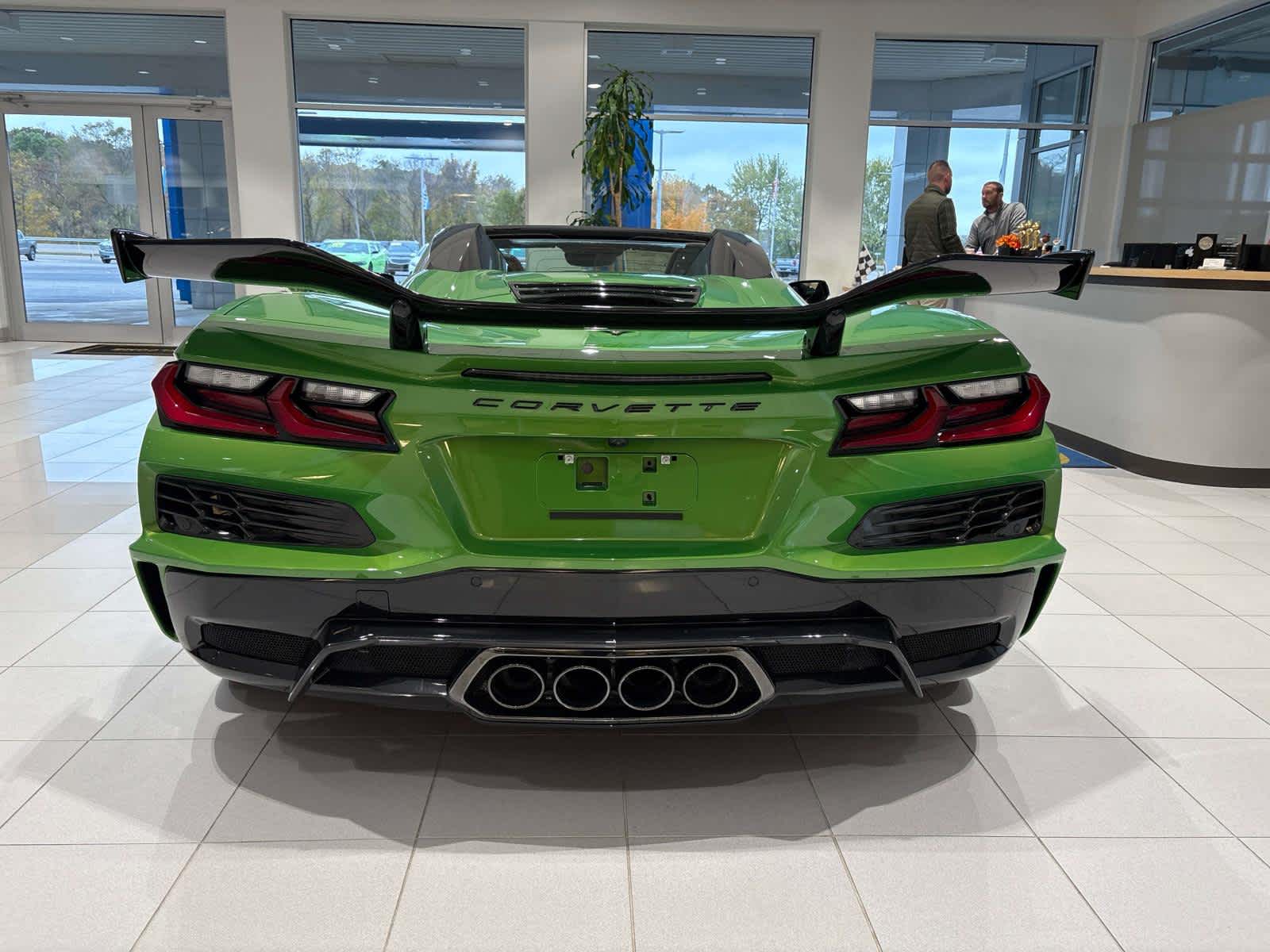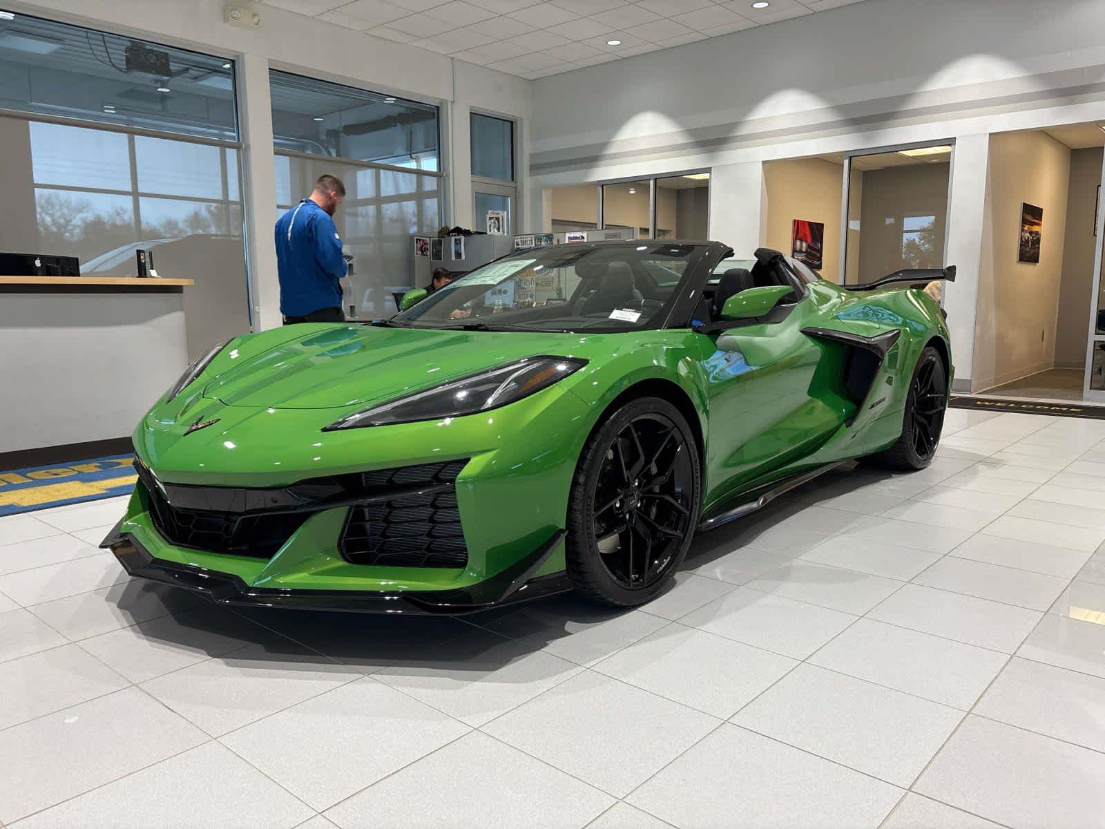 CONVERTIBLE TOP, CARBON FLASH-PAINTED NACELLES AND ROOF, WHEELS, 20" X 10" (50.8 CM X 25.4 CM) FRONT AND 21" X 13" (53.3 CM X 33 CM) REAR 10-SPOKE, GLOSS BLACK FORGED ALUMINUM, ENGINE, 5.5L V8 DI, HIGH-OUTPUT Variable Valve Timing (VVT), (670 hp [499.6 kW] @ 8400 rpm, 460 lb-ft of torque [623.8 N-m] @ 6300 rpm) (STD), TRANSMISSION, 8-SPEED DUAL CLUTCH, INCLUDES MANUAL AND AUTO MODES (STD). Chevrolet 3LZ with Roswell Green Metallic exterior and Jet Black interior features a 8 Cylinder Engine with 670 HP at 8400 RPM*.