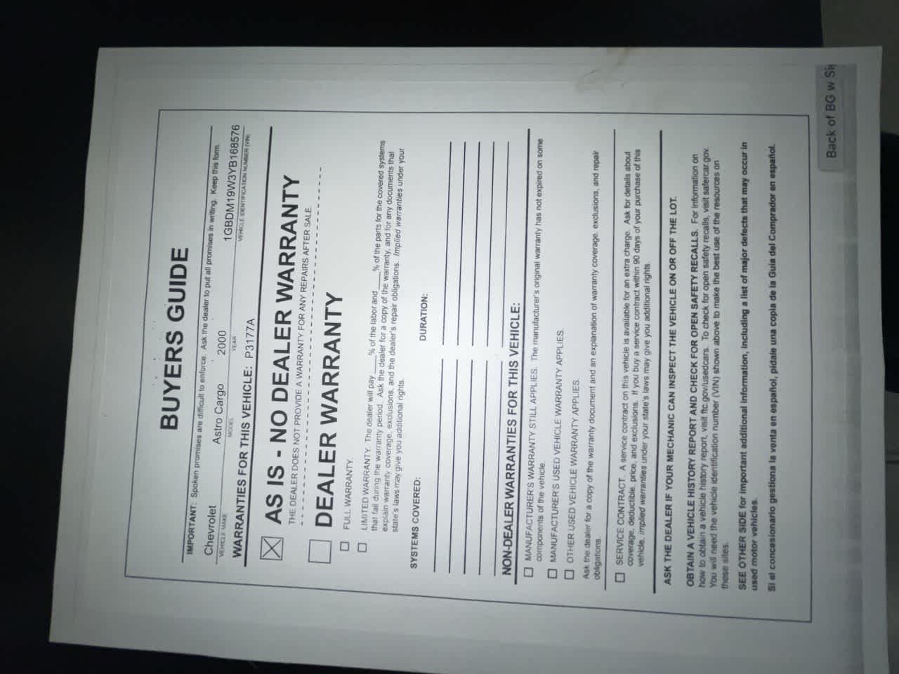 2000 Chevrolet Astro w/YF7