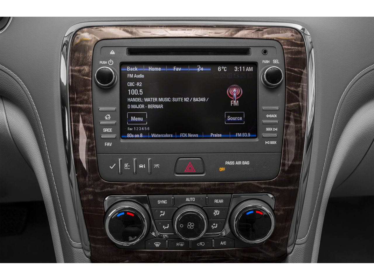 COLOR TOUCH NAVIGATION RADIO WITH INTELLILINK AND REAR SEAT ENTERTAINMENT, AM/FM/SIRIUSXM RADIO WITH CD/DVD PLAYER 6.5" diagonal touchscreen display, includes Advanced Bose 10-speaker system, rear seat display DVD, USB port, auxiliary input jack, rear audio controls with 2 headphone jacks (headphones not included) and 120V outlet, LPO, HIT THE ROAD ACCESSORY PACKAGE includes body-color molded assist steps, Roof Rack Cross Rail Package and cargo area all-weather floor mat, TRAILERING PACKAGE 4500 lbs. includes (V08) heavy-duty engine cooling system, (VR2) trailer hitch, ENGINE, 3.6L VARIABLE VALVE TIMING V6 WITH SIDI (SPARK IGNITION DIRECT INJECTION), DOHC (288 hp [214.7 kW] @ 6300 rpm, 270 lb-ft of torque [364.5 N-m] @ 3400 rpm) (STD), TRANSMISSION, ELECTRONICALLY CONTROLLED WITH OVERDRIVE (STD). Buick Premium with WHITE DIAMOND TRICOAT exterior and CHOCCACHINO interior features a V6 Cylinder Engine with 288 HP at 6300 RPM*.
