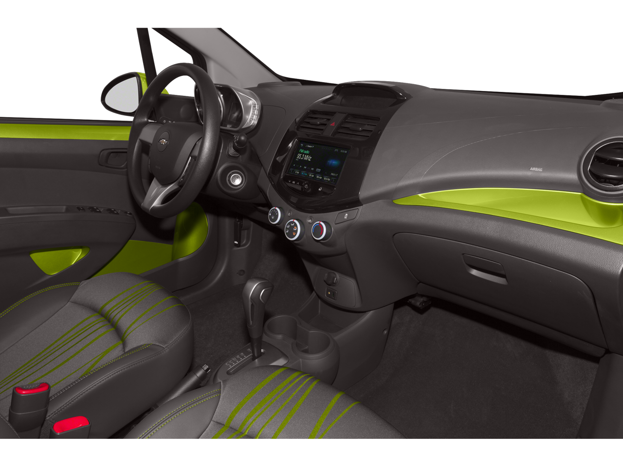 ENGINE, ECOTEC 1.2L DOHC 4-CYLINDER MFI (84 hp [62.6 kW] @ 6400 rpm, 83 lb-ft of torque [112.1 N-m] @ 4200 rpm) (STD), CONTINUOUS VARIABLE (CVT) (STD). Chevrolet LT with Lime exterior and Green w/Green trim interior features a 4 Cylinder Engine with 84 HP at 6400 RPM*.