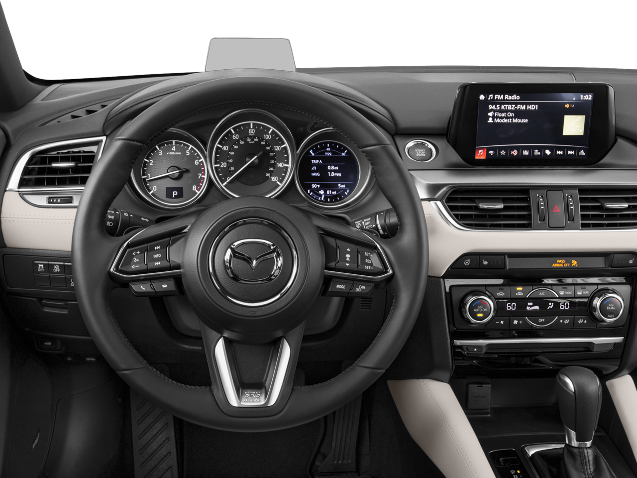 Leather Seats, Navigation, Heated Driver Seat, iPod/MP3 Input, Cross-Traffic Alert, Blind Spot Monitor, Heated Seats Rear Spoiler, MP3 Player, Sunroof, Onboard Communications System Mazda Mazda6 Grand Touring with JET BLACK MICA exterior and BLACK / ESPRESSO interior features a 4 Cylinder Engine with 184 HP at 5700 RPM*.