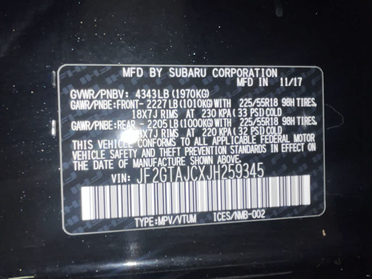 - Vehicle Name: Subaru Crosstrek