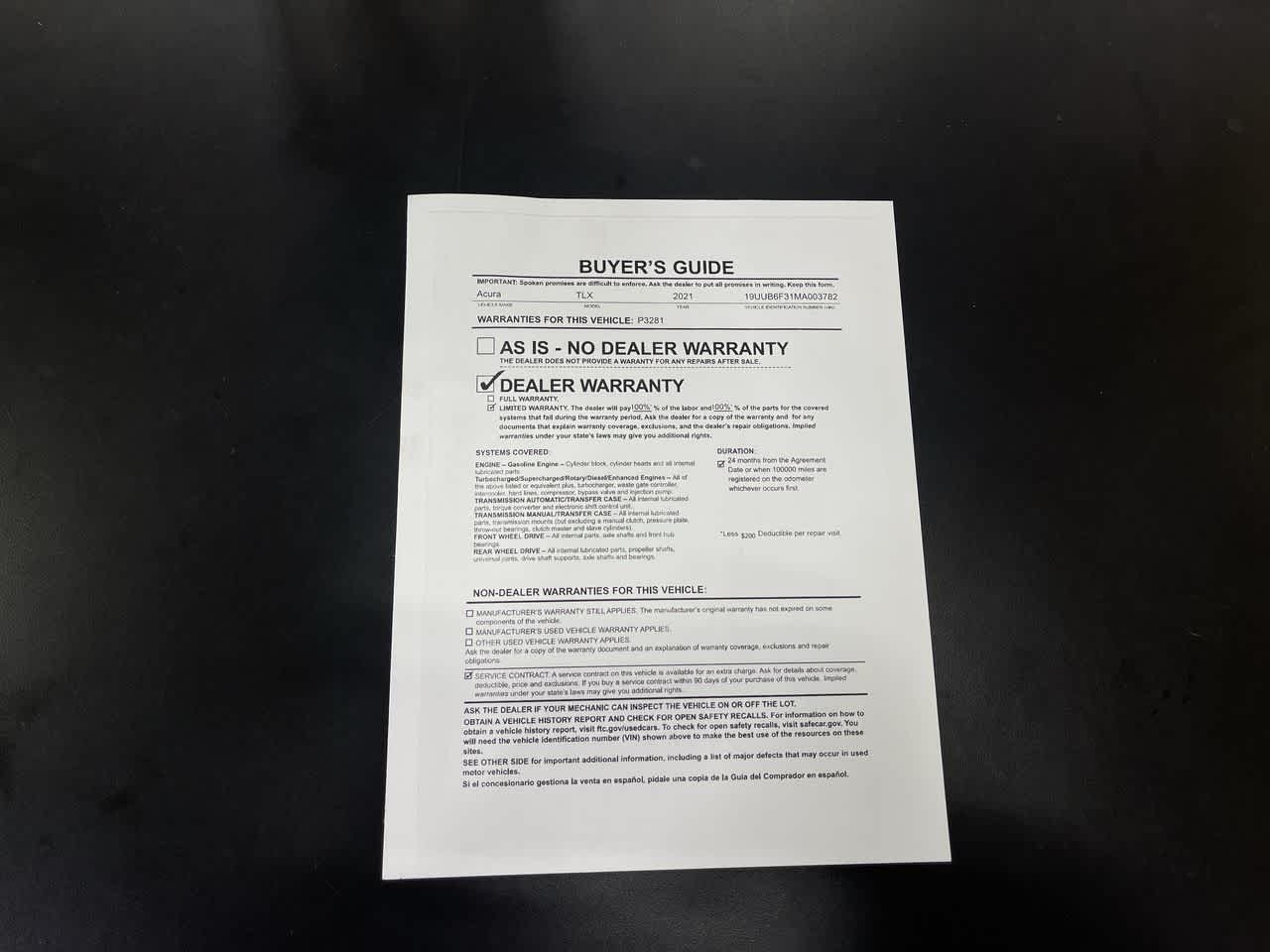- Vehicle Name: Acura TLX