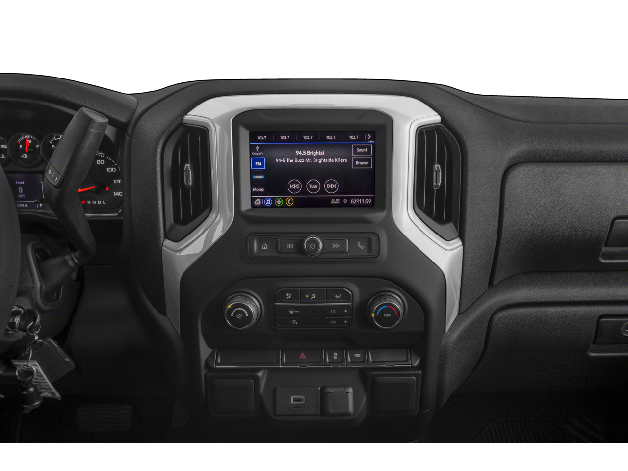 CHEVROLET INFOTAINMENT 3 SYSTEM 7 diagonal color touchscreen, AM/FM stereo. Additional features for compatible phones include: Bluetooth® audio streaming for 2 active devices, voice command pass-through to phone, wired Apple CarPlay® and Android Auto® capable. (STD), ENGINE, 2.7L TURBO (310 hp [231 kW] @ 5600 rpm, 348 lb-ft of torque [471 Nm] @ 1500 rpm) Includes (MQE) 8-speed automatic transmission and (KW5) 220-amp alternator.) (STD), ELECTRONICALLY CONTROLLED with overdrive and tow/haul mode. Includes Cruise Grade Braking and Powertrain Grade Braking (STD). Chevrolet Custom with RED HOT exterior and JET BLACK interior features a 4 Cylinder Engine with 310 HP at 5600 RPM*.