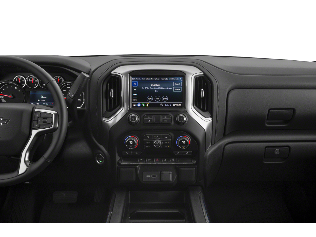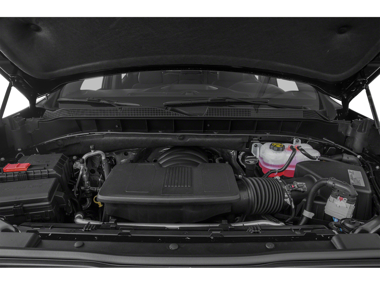 BED PROTECTION PACKAGE includes (B1J) wheel house liners and (CGN) Chevytec spray-on bedliner, WHEELS, 20 X 9 (50.8 CM X 22.9 CM) HIGH GLOSS BLACK PAINTED ALUMINUM, AUDIO SYSTEM, CHEVROLET INFOTAINMENT 3 SYSTEM 8 diagonal color touchscreen, AM/FM stereo. Additional features for compatible phones include: Bluetooth® audio streaming for 2 active devices, voice command pass-through to phone, wired Apple CarPlay® and Android Auto® capable. (STD), ENGINE, 5.3L ECOTEC3 V8 (355 hp [265 kW] @ 5600 rpm, 383 lb-ft of torque [518 Nm] @ 4100 rpm); featuring available Dynamic Fuel Management that enables the engine to operate in 17 different patterns between 2 and 8 cylinders, depending on demand, to optimize power delivery and efficiency (STD), TRANSMISSION, 10-SPEED AUTOMATIC, ELECTRONICALLY CONTROLLED with overdrive and tow/haul mode. Includes Cruise Grade Braking and Powertrain Grade Braking (STD) (Vehicles built with a V8 engine and (MQB) 10-speed automatic transmission will have (NSS) Not Equipped with Automatic Stop/Start, which removes Automatic Stop/Start and its content.).