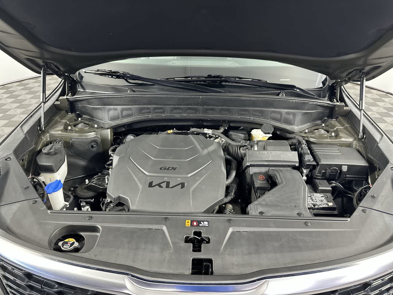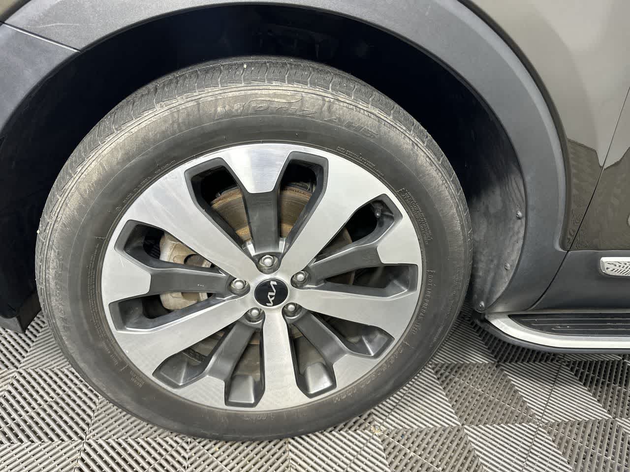 EX PREMIUM PACKAGE Satin Chrome Roof Rails, Anodized, Wheels: 20 x 7.5 Machined Alloy, Tires: 245/50R20, LED Headlamps, GVWR: 5,578 lbs, 2nd Row Captain Chairs, reclining feature Kia EX with Dark Moss exterior and Gray interior features a V6 Cylinder Engine with 291 HP at 6000 RPM*.