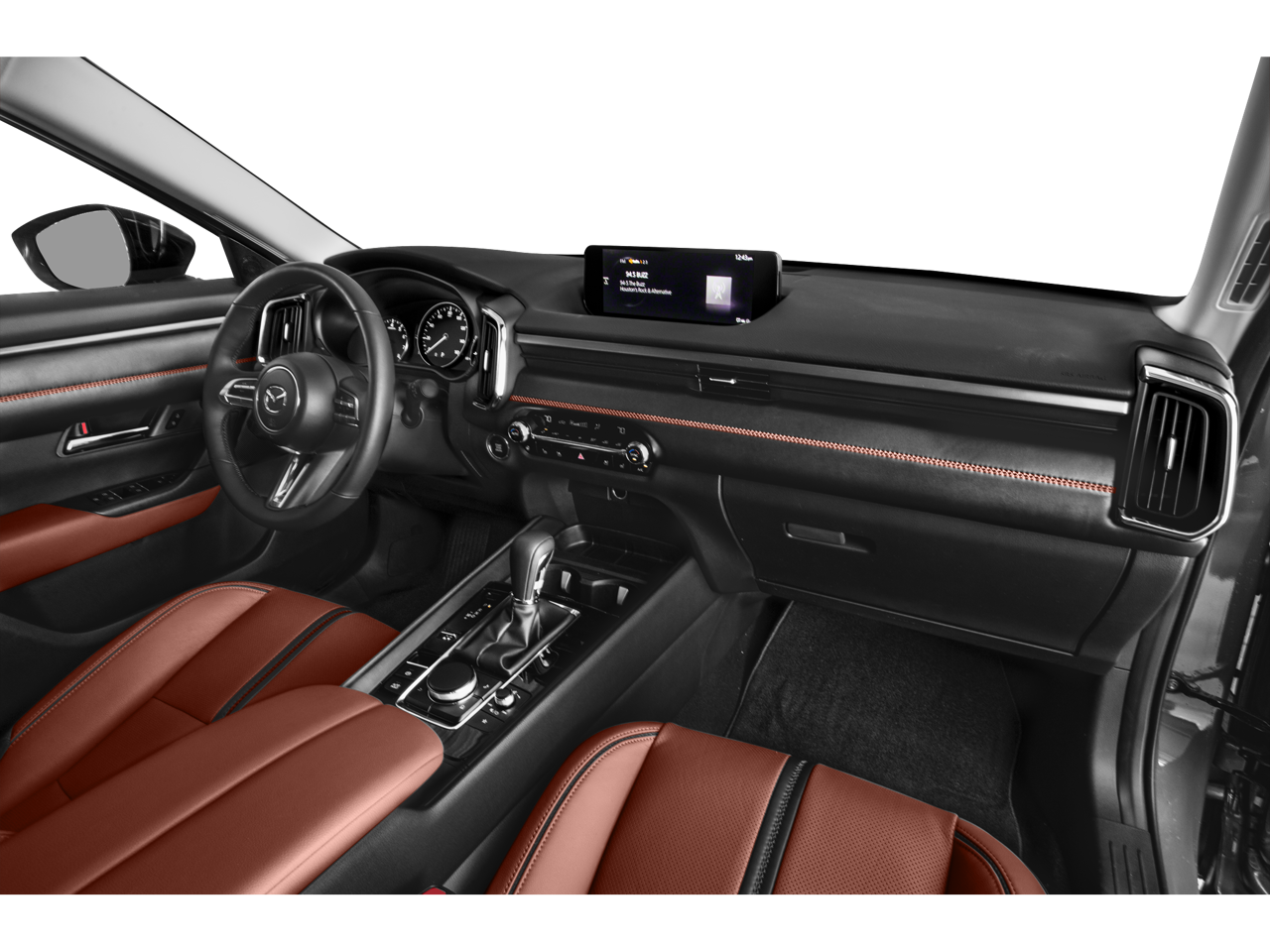 Leather Seats, Navigation, Panoramic Roof, Heated Driver Seat, Cooled Driver Seat, Premium Sound System, Satellite Radio, iPod/MP3 Input, Keyless Start, Dual Zone A/C, Blind Spot Monitor Rear Spoiler, MP3 Player, Sunroof, Onboard Communications System. Mazda CX-50 2.5 Turbo Premium Plus Package with Machine Gray Metallic exterior and Terracotta interior features a 4 Cylinder Engine with 227 HP at 5000 RPM*.