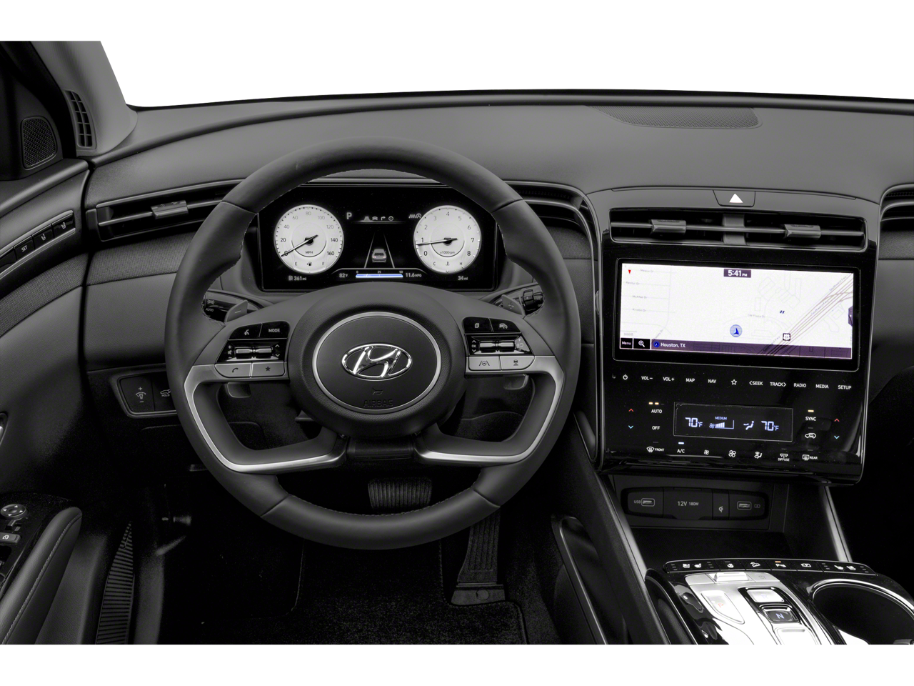 - Radio: Bose Premium w/AM/FM/HD Audio System -inc: 10.25" color touchscreen w/onboard navigation and traffic flow including incident data via HD Radio (HERE), digital 8-channel amp (w/custom equalization, digital signal processing, and dynamic speed compensation) and 8 speakers (1 twiddler on center of instrument panel, 2 tweeters, 2 front door, 2 rear door, 1 woofer on rear quarter panel), SiriusXM satellite radio (3-month trial subscription), BlueLink+ connected car, Apple CarPlay and Android Auto, dynamic voice recognition and USB connectivity
