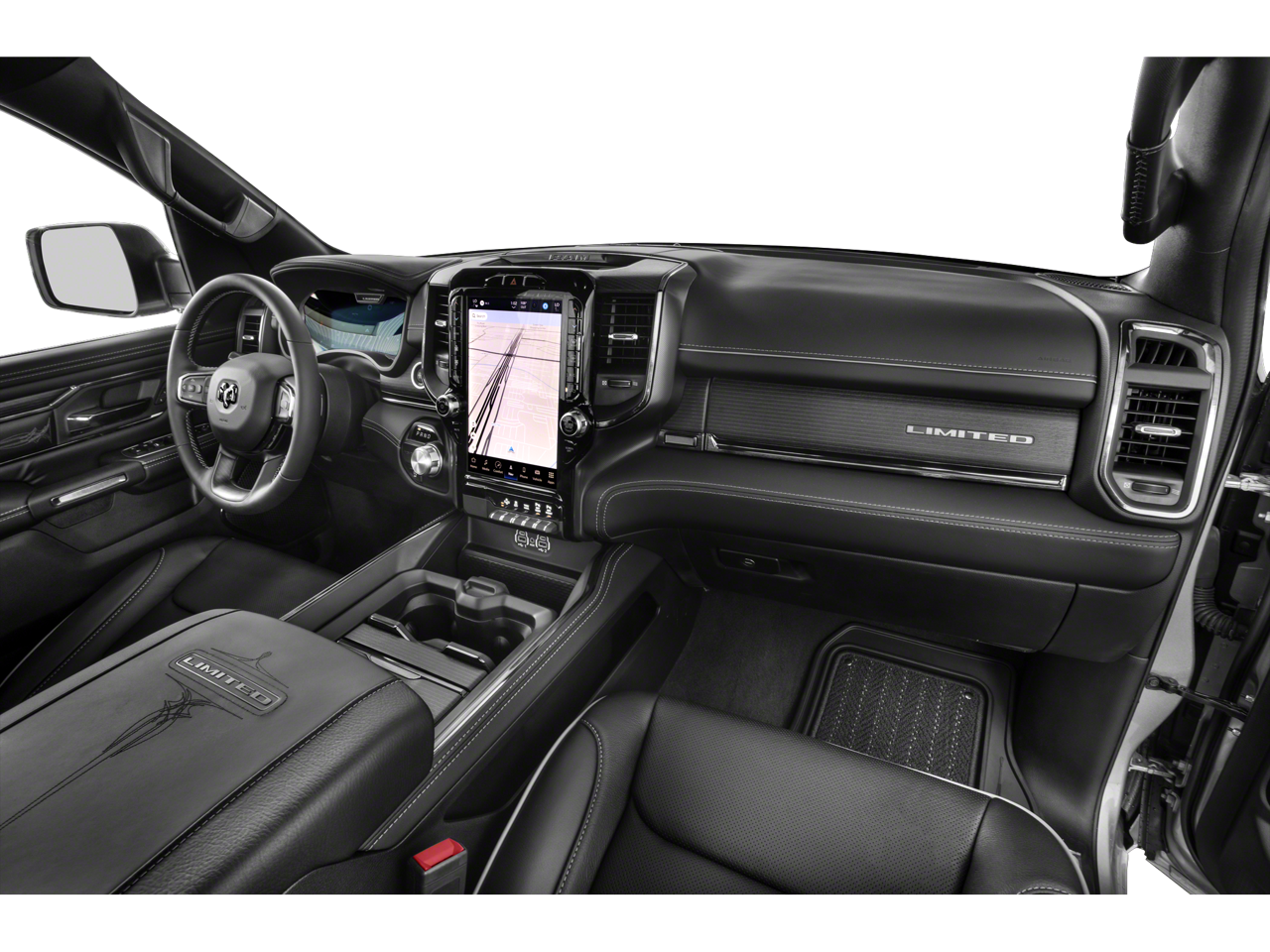 TRANSMISSION: 8-SPEED AUTOMATIC (8HP75) (STD), ENGINE: 5.7L V8 HEMI MDS VVT ETORQUE Delete Alternator, 18 Aluminum Spare Wheel (STD). Ram Limited with Delmonico Red Pearlcoat exterior and Black interior features a 8 Cylinder Engine with 395 HP at 5600 RPM*.